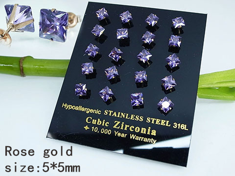 > Stainless Steel Jewelry Rose gold Purple Square Zircon Earrings