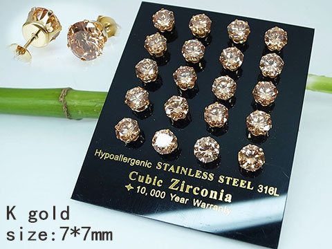 > Stainless Steel Jewelry Golden Champagne Round Zircon Earrings