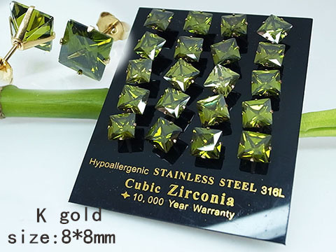 > Stainless Steel Jewelry Golden Olive green Square Zircon Earrings