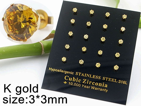 > Stainless Steel Jewelry Golden Yellow Round Zircon Earrings