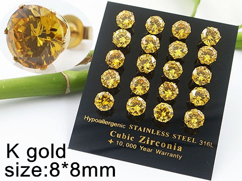 > Stainless Steel Jewelry Golden Yellow Round Zircon Earrings