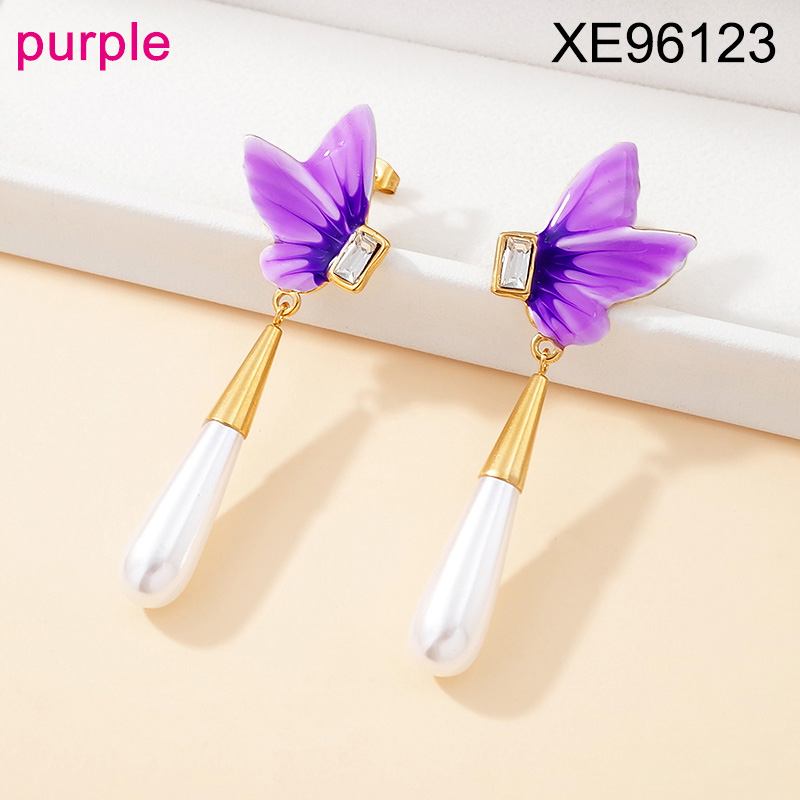 Level B Stainless Steel New Trendy Women Jewelry Pearl Style/Plastic Beads Purple Animal Butterfly Golden Earrings