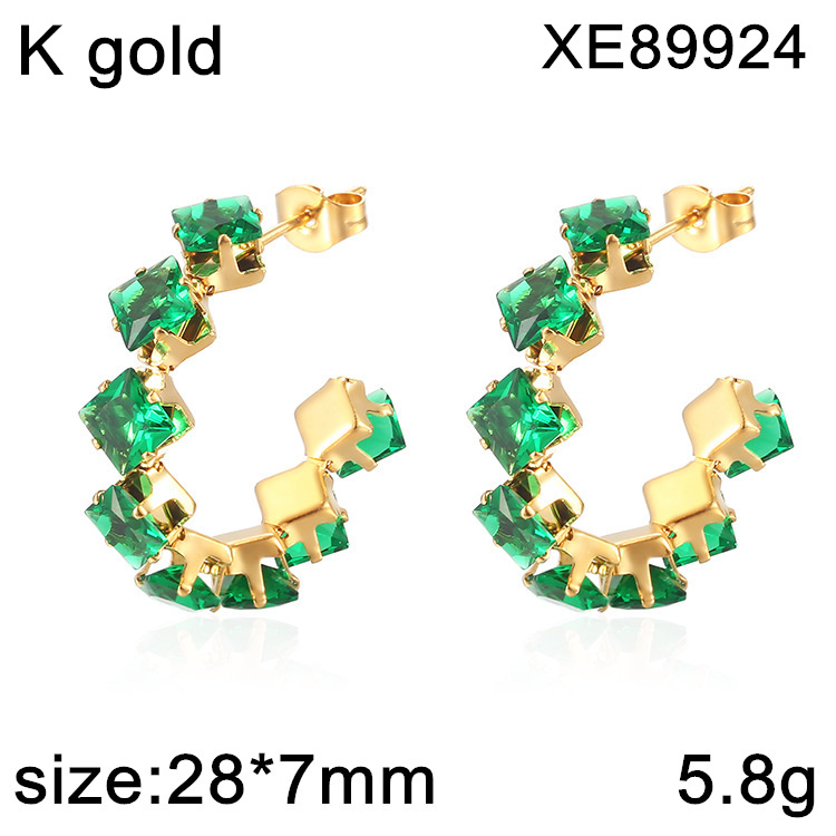 Home > Stainless Steel Earrings > Stainless Steel Jewelry New Trendy Golden Green CZ Earring