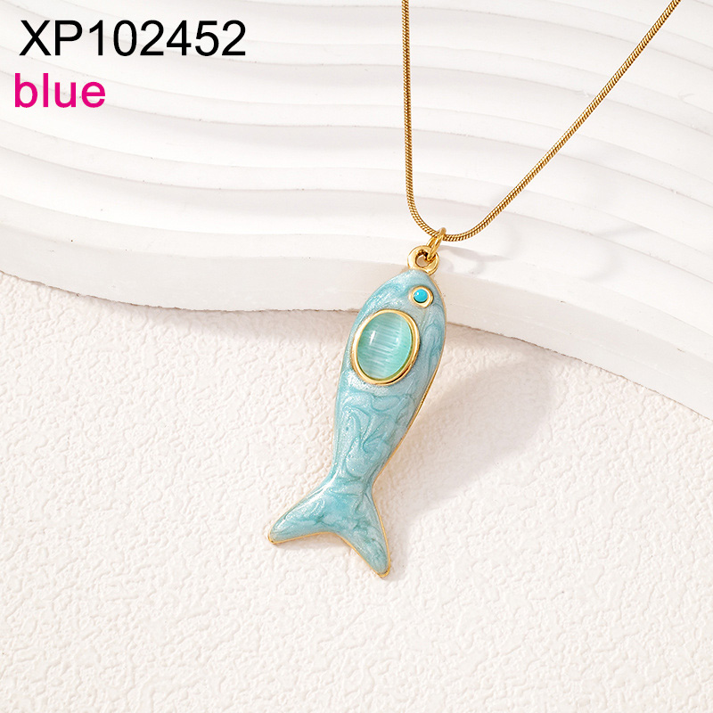 Level B Stainless Steel New Trendy Women Jewelry Drip Oil/Enamel Blue Animal Fish Golden Pendant