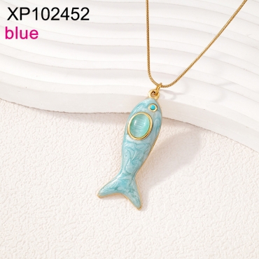Home > Stainless Steel Pendants > Epoxy Pendants > Level B Stainless Steel New Trendy Women Jewelry Drip Oil/Enamel Blue Animal Fish Golden Pendant