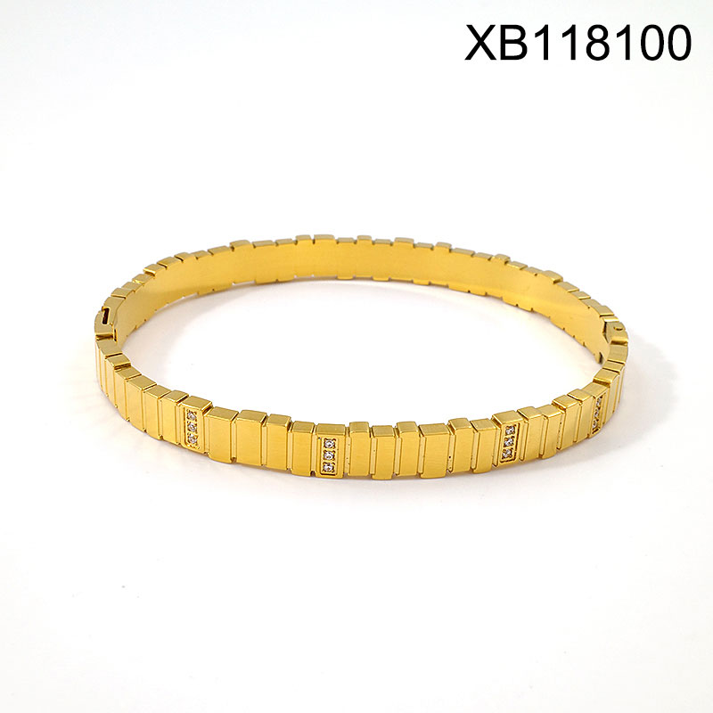 Home > Stainless Steel Bracelets > Featured Bangles > Level B Stainless Steel New Trendy Women Jewelry Golden CNC Bangle