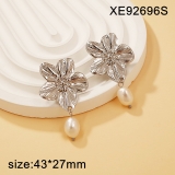Level A Stainless Steel New Trendy Women Jewelry Pearl Style Flower Golden Earrings