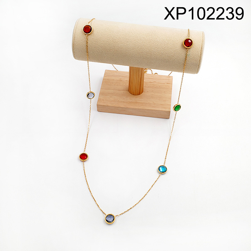 Home > Stainless Steel Pendants > Sweater Chain Pendant > Level A Stainless Steel New Trendy Women Jewelry Mixed color Glass Round Golden Sweater Chain Pendant