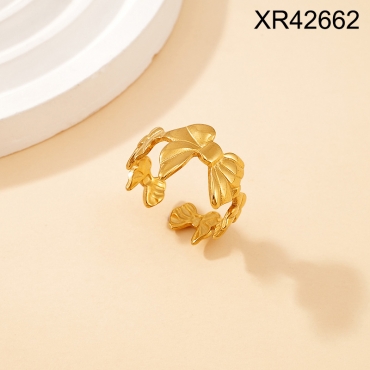 > Level C Stainless Steel New Trendy Women Jewelry Bowknot Golden Open Rings;Ring size can be adjusted freely