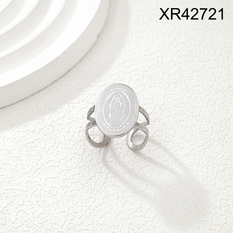 Level B Stainless Steel New Trendy Women Jewelry Religion Steel color Open Rings;Ring size can be adjusted freely