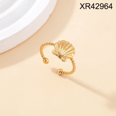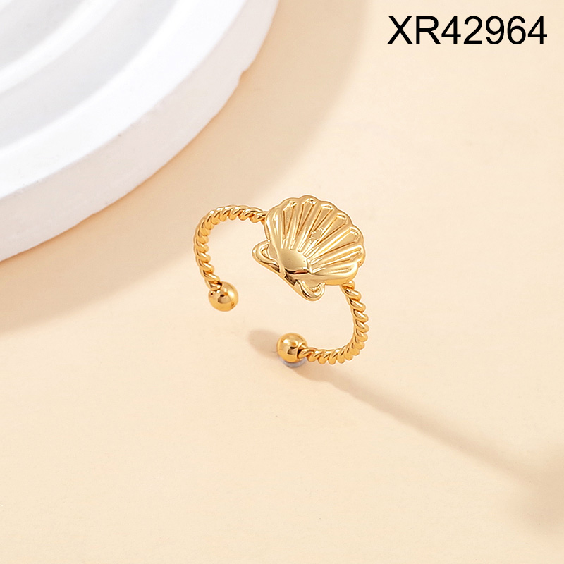 Level B Stainless Steel New Trendy Women Jewelry Summer beach Animal Shell Golden Open Rings;Ring size can be adjusted freely