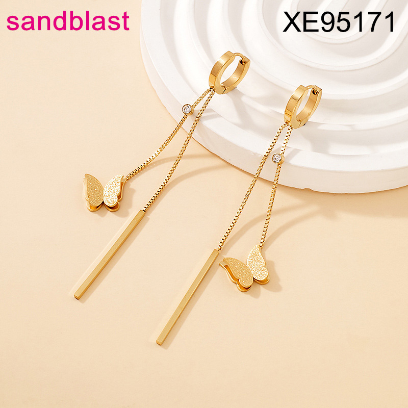> Level B Stainless Steel New Trendy Women Jewelry Sandblast Animal Butterfly Golden Hoop Earrings