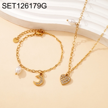 > Level A Stainless Steel New Trendy Women Jewelry Pearl Style/Plastic Beads Heart Moon Golden Chain SET