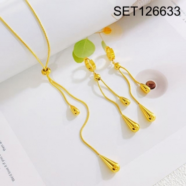 Home > Stainless Steel Sets > Hot Set Jewerly > Level B Stainless Steel New Trendy Women Jewelry Water Drip Golden SET
