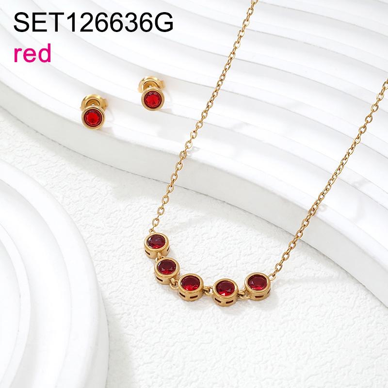Level A Stainless Steel New Trendy Women Jewelry Red Glass Round Steel color SET