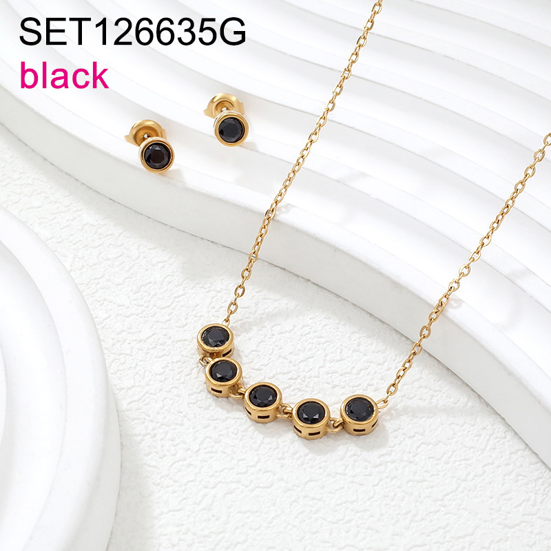 Level A Stainless Steel New Trendy Women Jewelry Black Glass Round Steel color SET