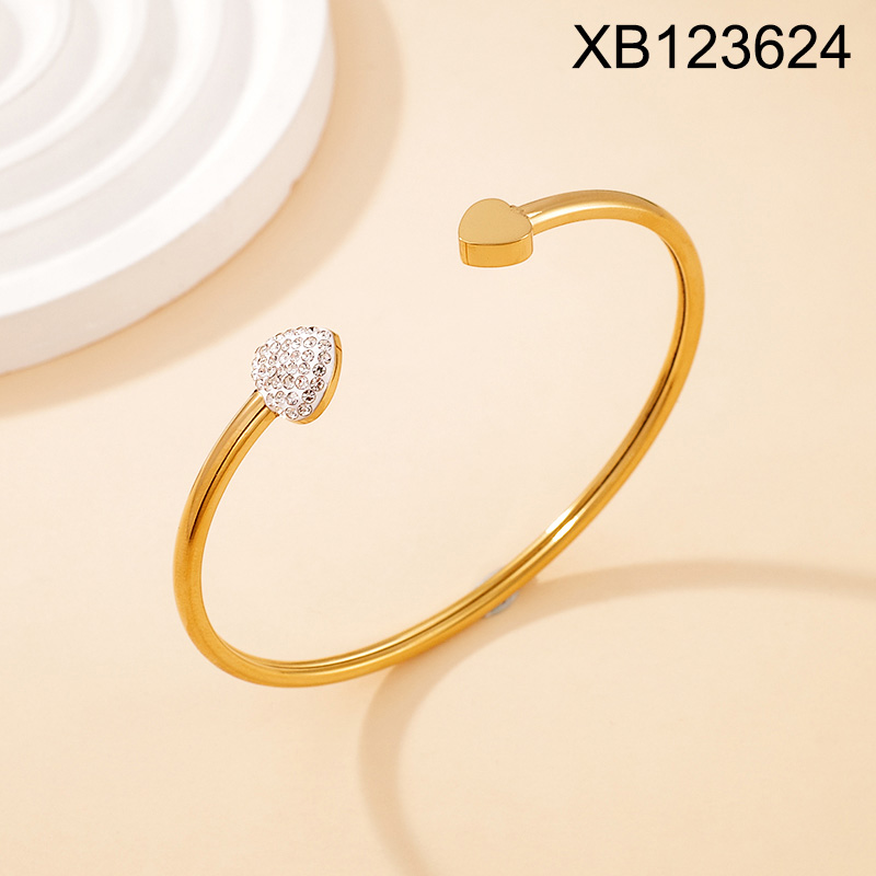 Level B Stainless Steel New Trendy Women Jewelry Heart Golden Open Bangle;Bangle size can be adjusted freely