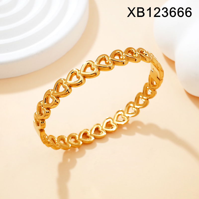 Level B Stainless Steel New Trendy Women Jewelry Heart Golden Bangle