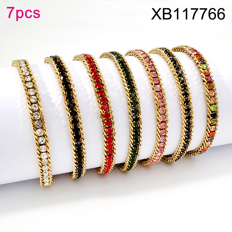 Home > Stainless Steel Bracelets > Hot Bracelet > Level B Stainless Steel New Trendy Women Jewelry Mixed color Rhinestone Golden Bracelet