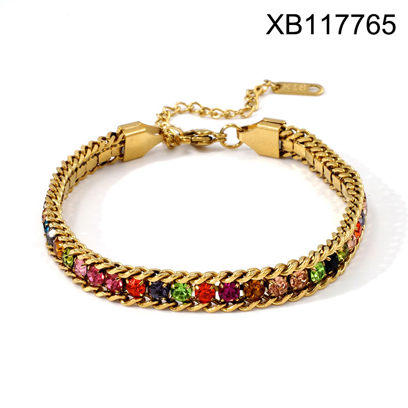Level B Stainless Steel New Trendy Women Jewelry Mixed color Rhinestone Golden Bracelet