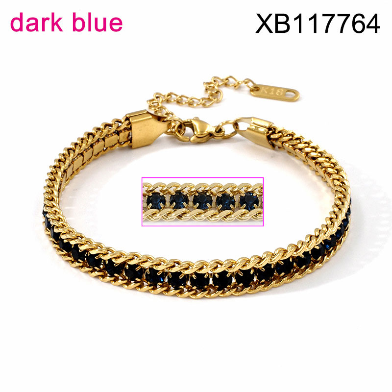 Level B Stainless Steel New Trendy Women Jewelry Dark blue Rhinestone Golden Bracelet