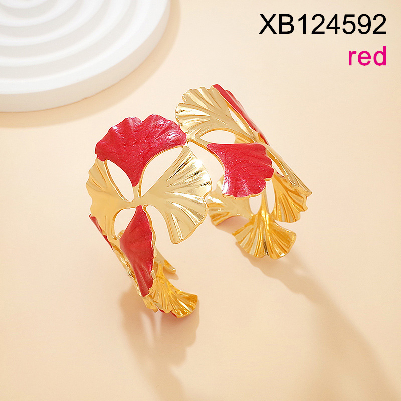 Home > Stainless Steel Bracelets > Hot Bracelet > Level C Stainless Steel New Trendy Women Jewelry Drip Oil/Enamel Ginkgo leaf Golden Open Bangle;Bangle size can be adjusted freely