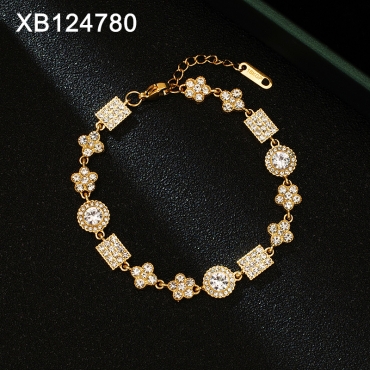 Level B Stainless Steel New Trendy Women Jewelry White Rhinestone Flower Rectangle Round SYC Golden Bracelet