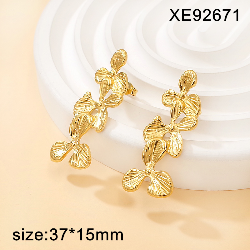 > Stainless Steel New Trendy Women Jewelry Flower Godlen Earrings
