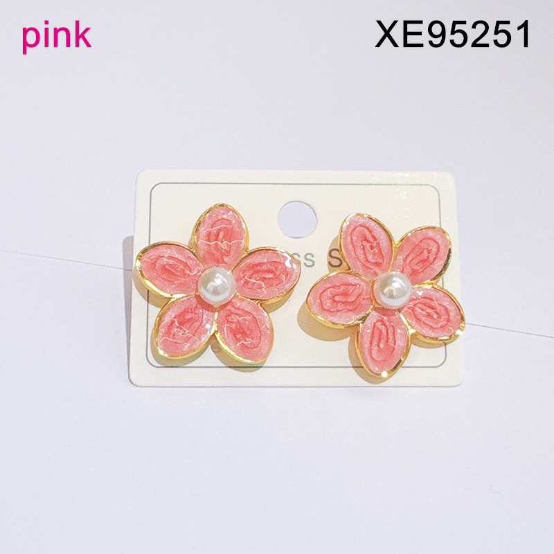 > Level B Stainless Steel New Trendy Women Jewelry Pearl Style/Plastic Beads Drip Oil/Enamel Pink Flower Golden Earrings
