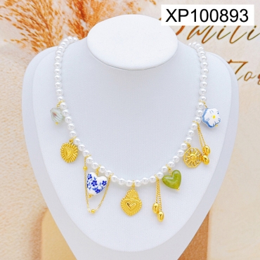 > Level B Stainless Steel New Trendy Women Jewelry Pearl Style/Plastic Beads Sun Heart Golden Pendant
