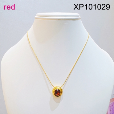 > Level B Stainless Steel New Trendy Women Jewelry Round Red Glass zirconium Golden Pendant