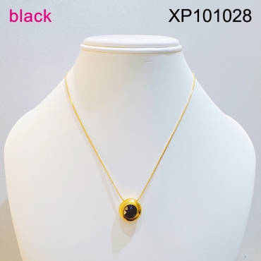 > Level B Stainless Steel New Trendy Women Jewelry Round Black Glass zirconium Golden Pendant