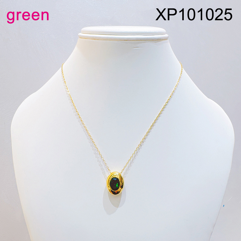 > Level B Stainless Steel New Trendy Women Jewelry Oval Green Glass zirconium Golden Pendant