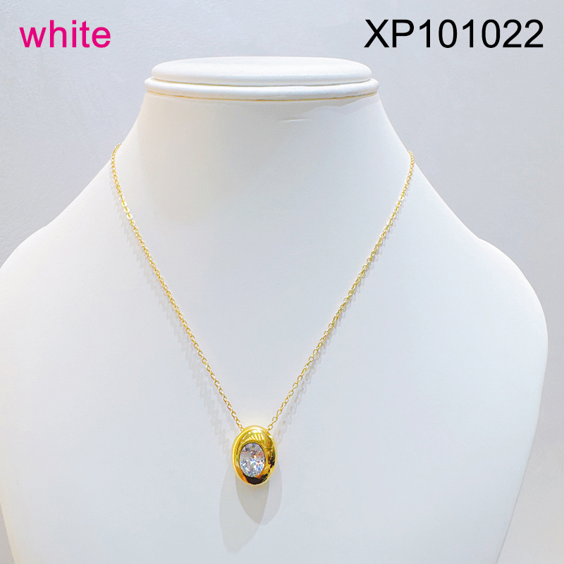 > Level B Stainless Steel New Trendy Women Jewelry Oval White Glass zirconium Golden Pendant
