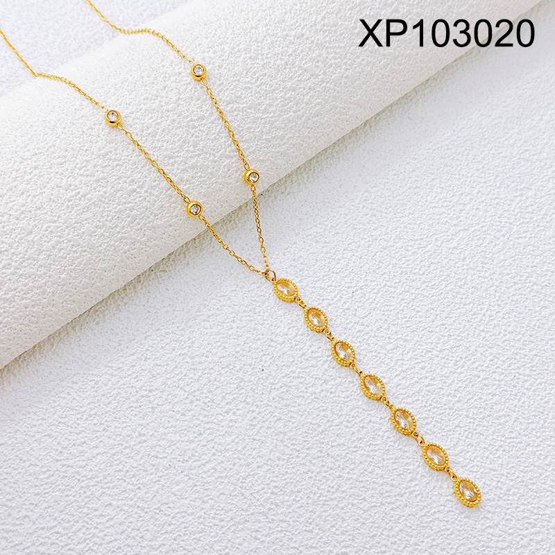 Level B Stainless Steel New Trendy Women Jewelry Oval White Crystal zirconium Golden Pendant