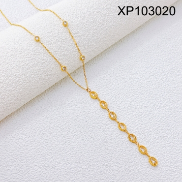 Home > Stainless Steel Pendants > Hot Pendant > Level B Stainless Steel New Trendy Women Jewelry Oval White Crystal zirconium Golden Pendant