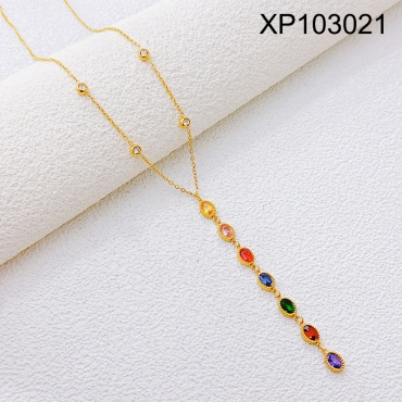 Level B Stainless Steel New Trendy Women Jewelry Oval Mixed color Crystal zirconium Golden Pendant