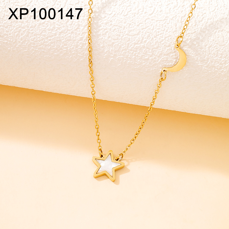 Level C Stainless Steel New Trendy Women Jewelry Star Moon Golden Pendant