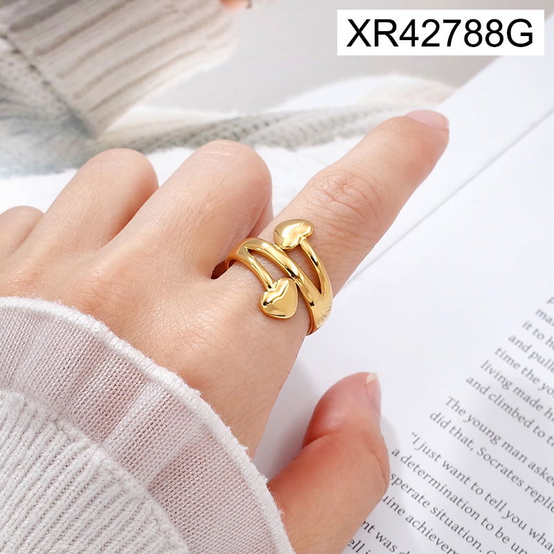 Level A Stainless Steel New Trendy Women Jewelry Heart Golden Open Rings;Ring size can be adjusted freely