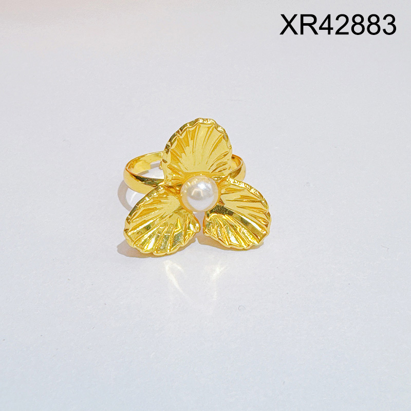 Home > Stainless Steel Rings > Hot Ring > Level C Stainless Steel New Trendy Women Jewelry Pearl Style/Plastic Beads Flower Golden Open Rings;Ring size can be adjusted freely