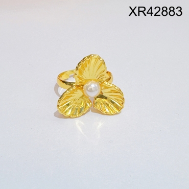 Level C Stainless Steel New Trendy Women Jewelry Pearl Style/Plastic Beads Flower Golden Open Rings;Ring size can be adjusted freely