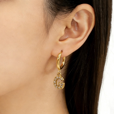 Home > Letter Jewelry > Hot Letter Jewelry > Level B Stainless Steel Jewelry New Trendy Sticky Stone Letter G Golden Hoop Earrings