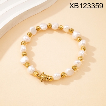 > Level B Stainless Steel New Trendy Women Jewelry Pearl Style Summer beach Animal Turtle Golden Elastic Bracelet
