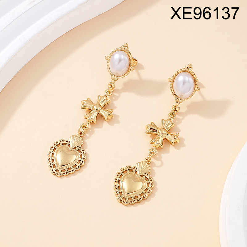 Level B Stainless Steel New Trendy Women Jewelry Pearl Style/Plastic Beads Heart Golden Mother's Day Earrings