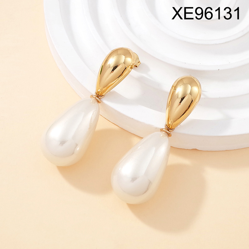 Level B Stainless Steel New Trendy Women Jewelry Pearl Style/Plastic Beads Water Drip Golden Earrings