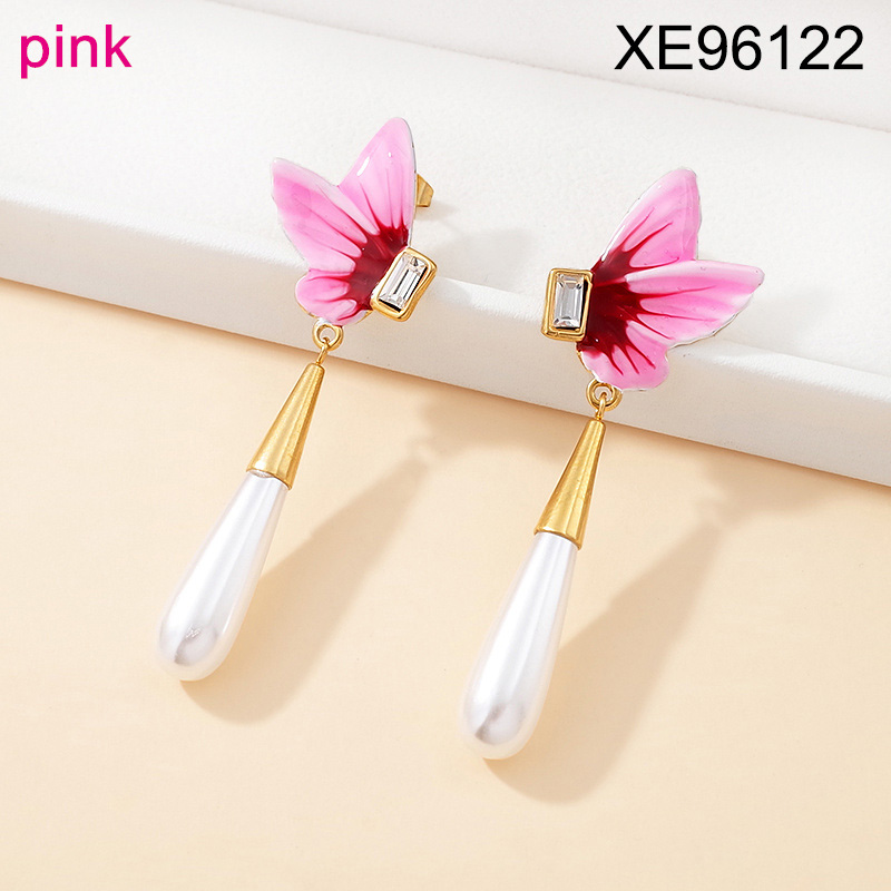 Level B Stainless Steel New Trendy Women Jewelry Pearl Style/Plastic Beads Pink Animal Butterfly Golden Earrings