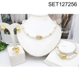 Home > Stainless Steel Sets > 4pcs Sets > Level B Stainless Steel New Trendy Women Jewelry Pearl Style/Plastic Beads Golden 4pcs SET