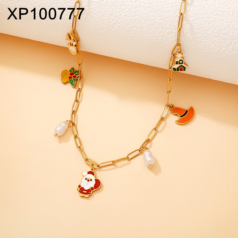 Home > Holiday Jewelry > Holiday Jewelry > Level B Stainless Steel New Trendy Women Jewelry Drip Oil/Enamel Christmas Golden Pendant