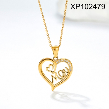 Home > Holiday Jewelry > Holiday Jewelry > Level A Stainless Steel New Trendy Women Jewelry Heart Golden Mother's Day Pendant