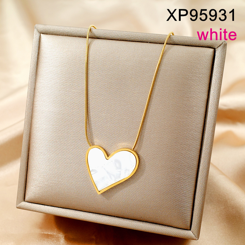 Level C Stainless Steel Jewelry New Trendy White Heart Golden Valentine's Day Pendant